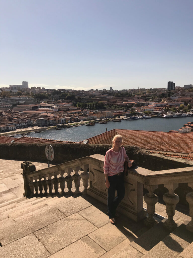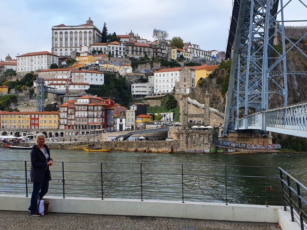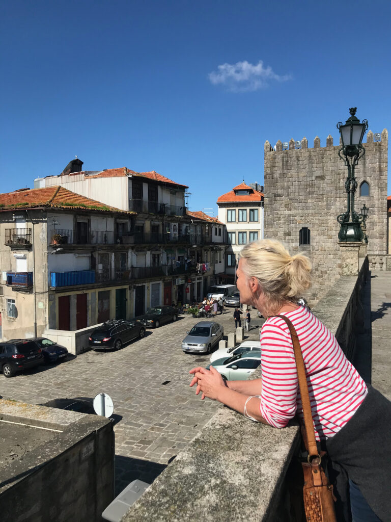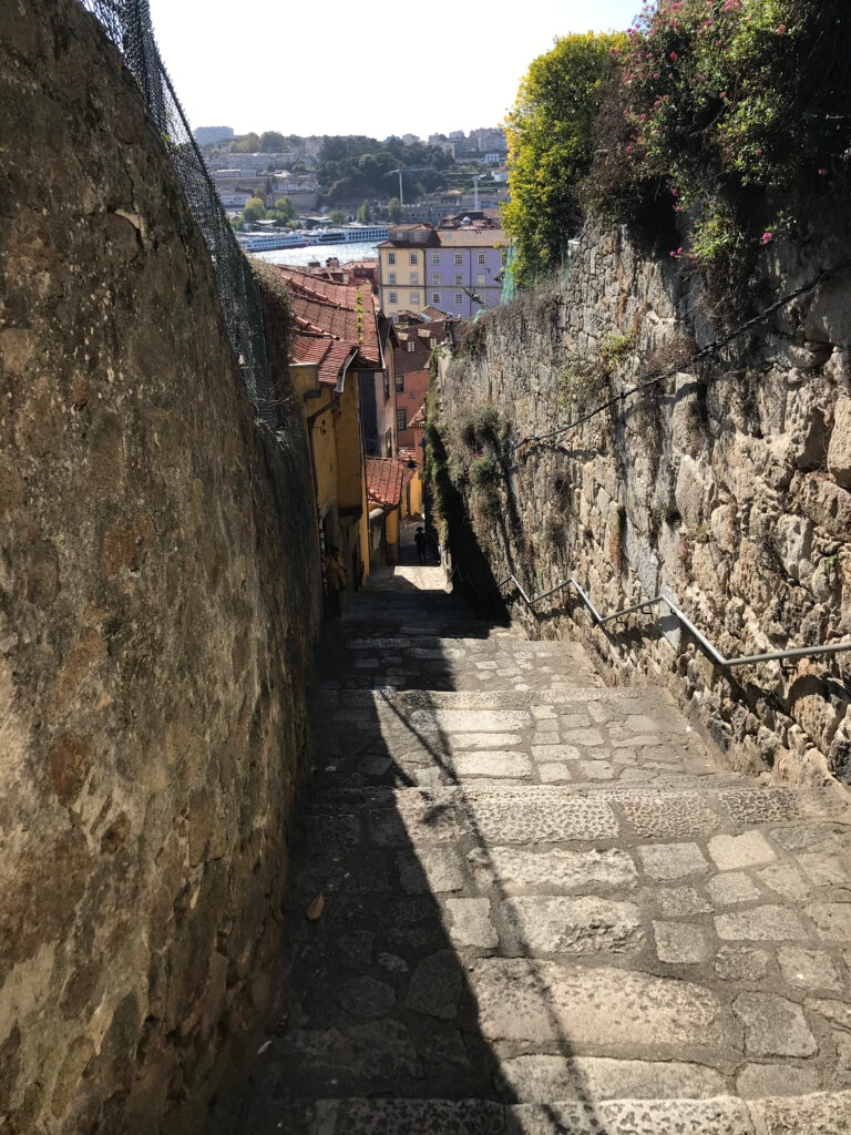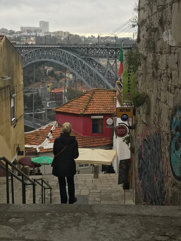 Annette auf dem Weg runter, mit Blick auf den Douro und auf die Ponte Louis I…
