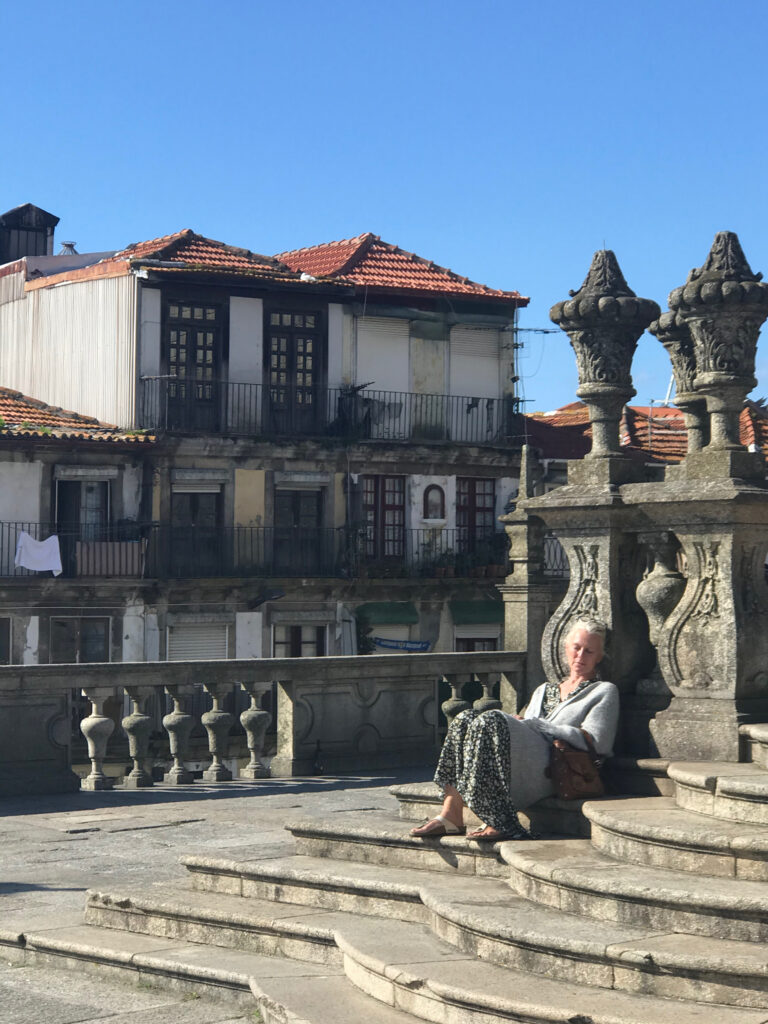 Annette vor der Kirche des heiligen Ildefonso (Igreja de Santo Ildefonso)